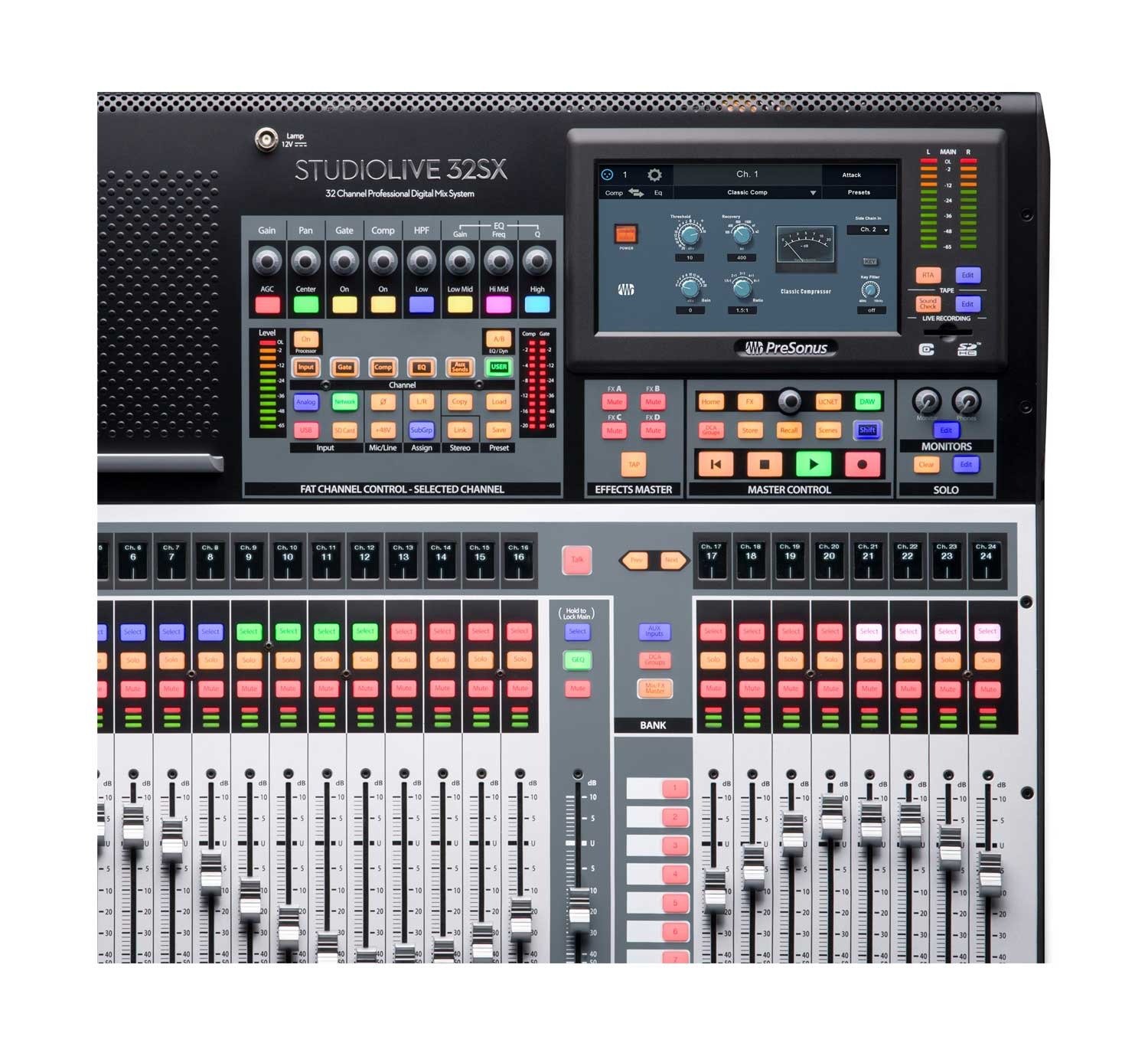 Impulsado por el motor FLEX DSP de doble núcleo de PreSonus, el mezclador digital StudioLive 32SX equipado con 40 canales de mezcla, 26 buses de mezcla y 286 procesadores simultáneos. Incluyendo 4 sistemas de reverberación estéreo y modelos de plug-in de Fat Channel en cada entrada