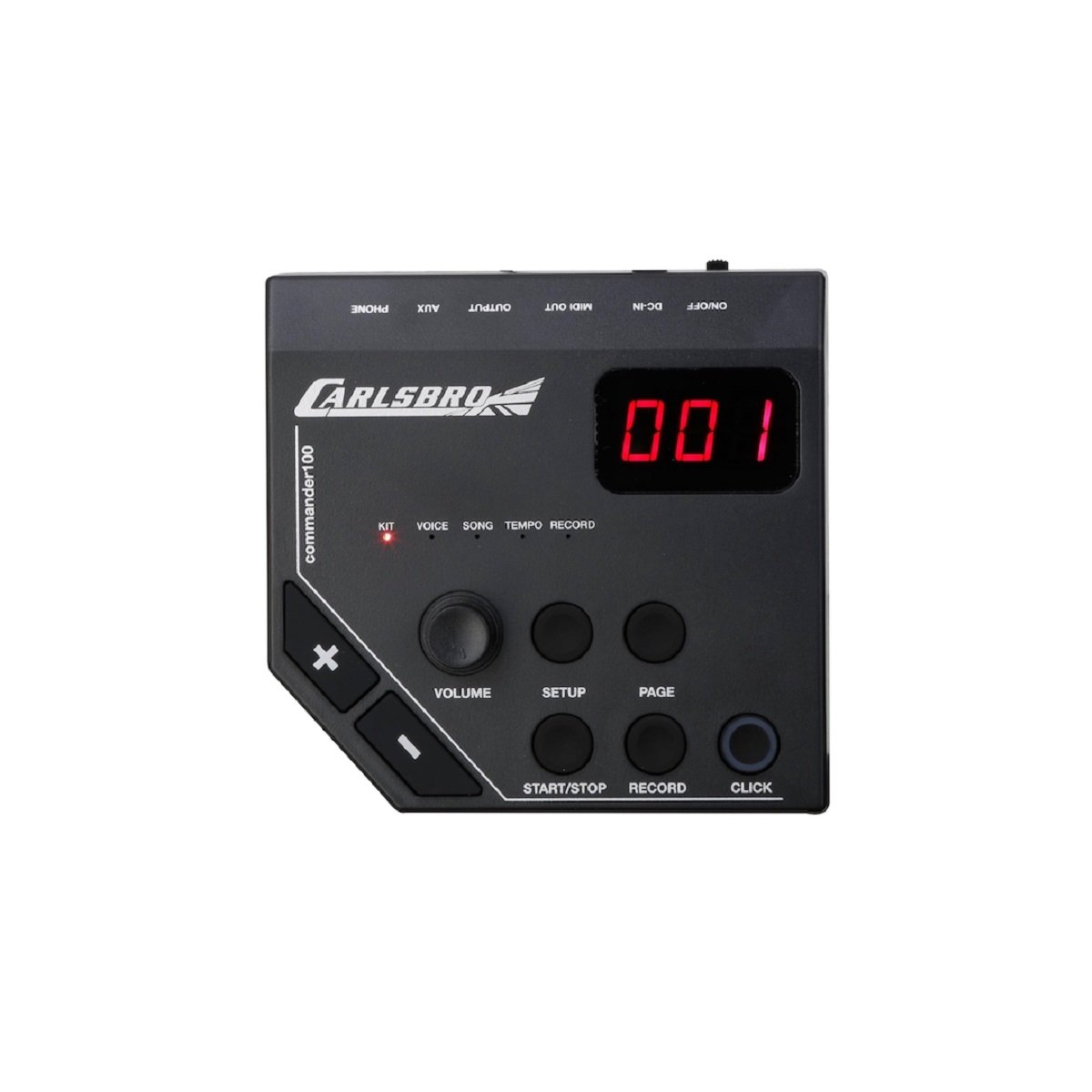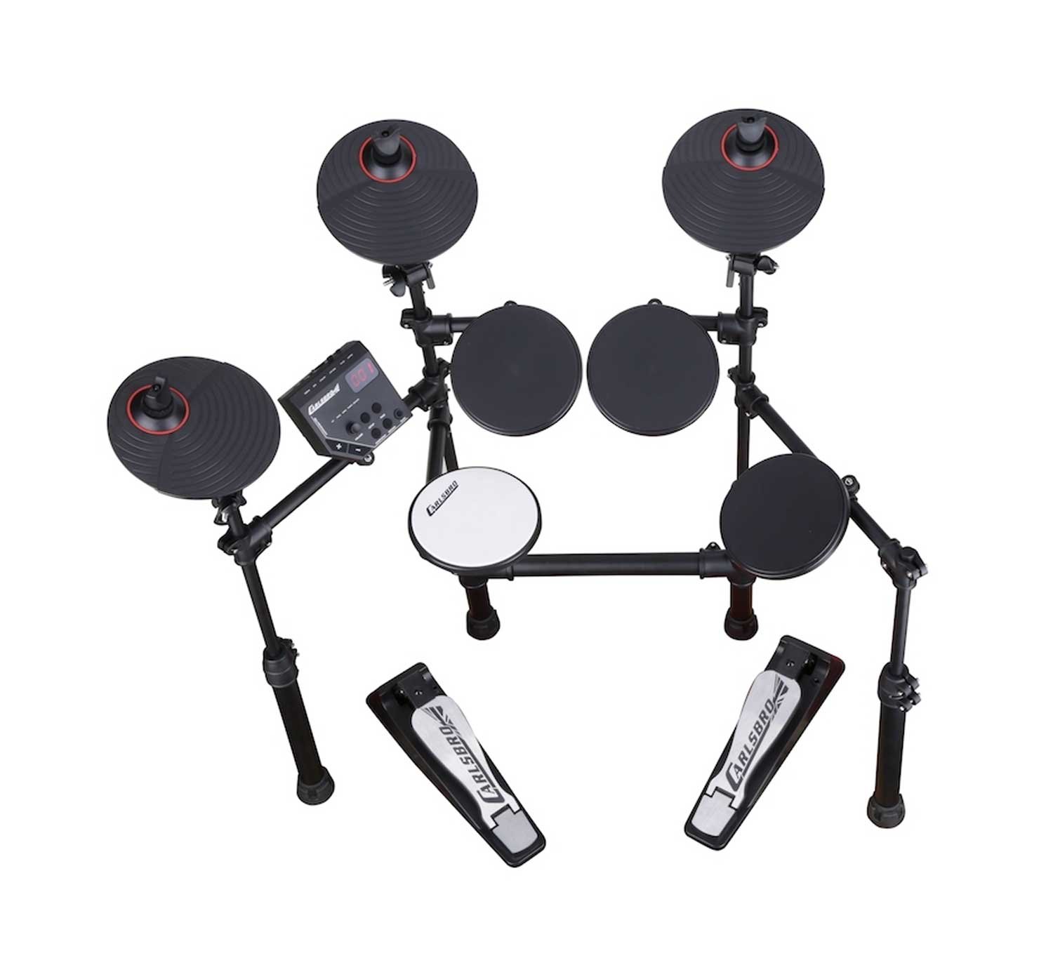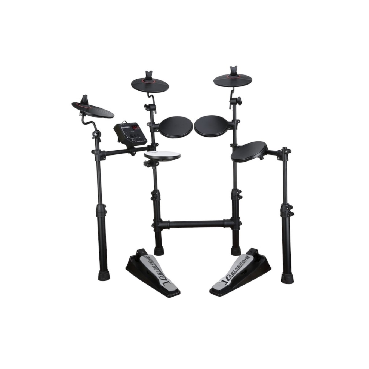 Kit de batería electrónica Carlsbro CSD100 de 7 piezas compuesto por un módulo Commander 100 que cuenta con 10 kits de batería preestablecidos, 108 voces de percusión, 10 canciones de demostración, entrada auxiliar y un metrónomo, 4 pads de batería y 3 platillos, incluido un platillo ride de doble zona y un marco telescópico totalmente ajustable en altura, es ideal para presentaciones en vivo o sesiones de grabación en estudio.