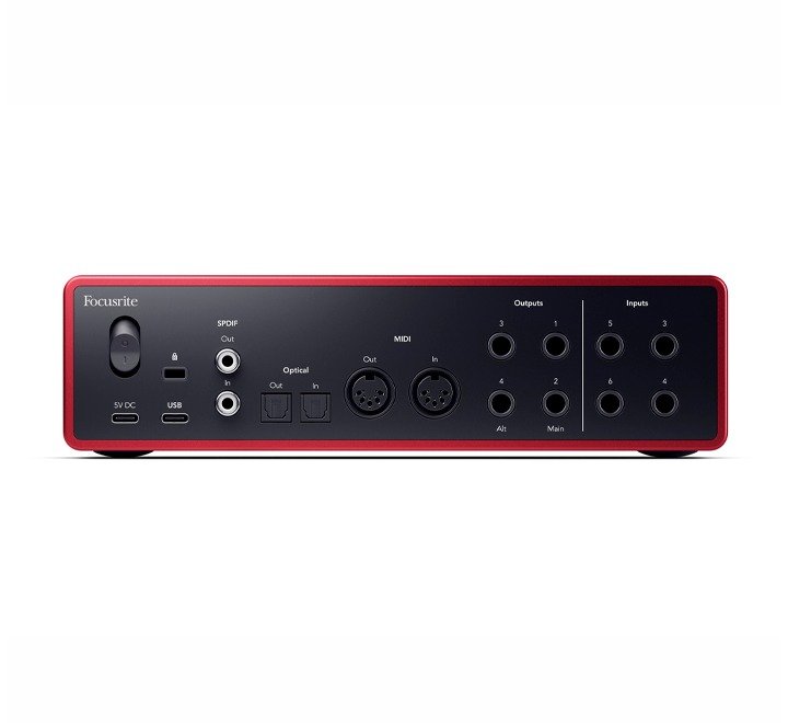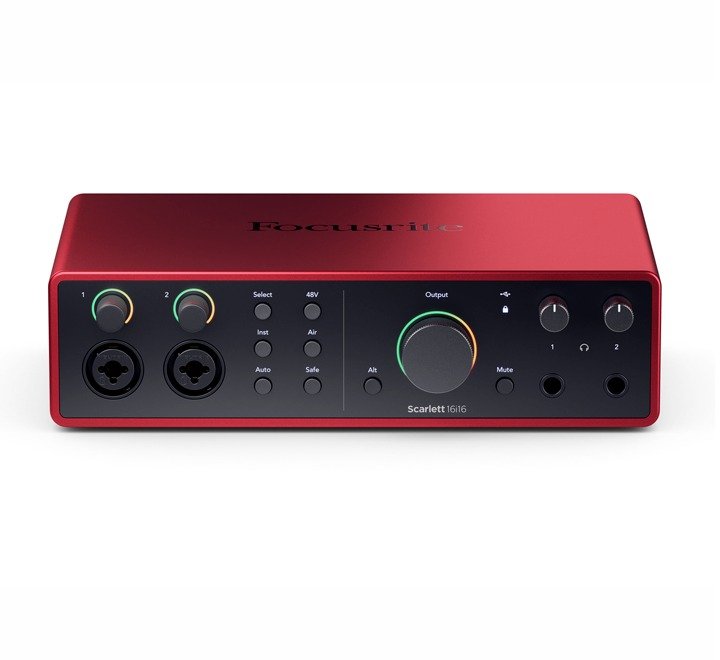La INTERFAZ DE AUDIO FOCUSRITE SCARLETT 16I16 4G ofrece 16 entradas y 16 salidas con calidad profesional, perfecta para entornos de grabación avanzados. Integra cuatro preamplificadores Scarlett con ganancia automática, Clip Safe y función Air, capturando cada detalle con fidelidad y calidez analógica.
