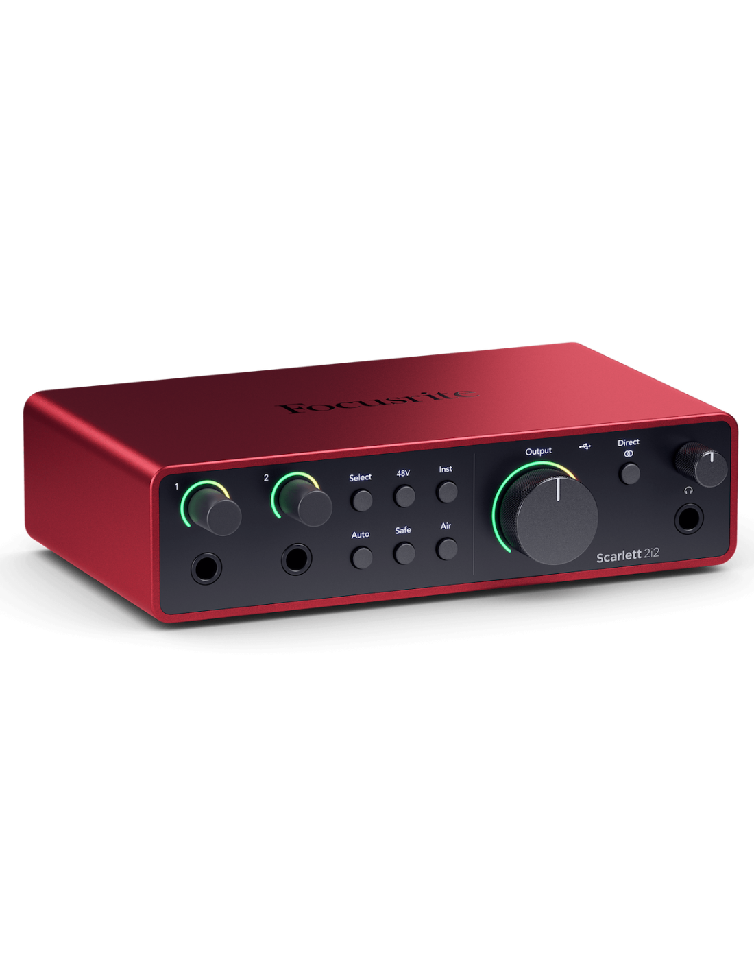 • 2 preamplificadores de micrófono Scarlett con ganancia de 69 dB