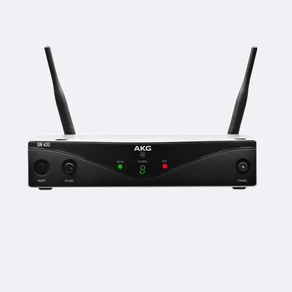 El sistema de micrófono inalámbrico WMS420 proporciona una solución altamente flexible y fácil de usar. El sistema de frecuencia ultra alta se configura en cuestión de segundos y es igualmente adecuado en el escenario y en lugares donde se necesita una solución de canal único o múltiple. Todo el sistema inalámbrico WMS420 consiste en el receptor estacionario SR420, el transmisor de mano HT420. El transmisor de mano HT420 está disponible con el micrófono dinámico D5 patentado acústico. Esta cápsula garantiza el rechazo máximo contra los comentarios, el ruido de manejo reducido y el famoso sonido AKG. Ambos transmisores se envían con contactos de carga que permiten el uso de baterías recargables. Además, los transmisores ofrecen un excepcional tiempo de operación de ocho horas desde una sola batería de tamaño AA, lo que reduce drásticamente los costos operativos en el uso diario. Las antenas receptoras desmontables permiten el uso de accesorios profesionales, como divisores de antena y antenas direccionales montadas de forma remota para sistemas de canales múltiples.