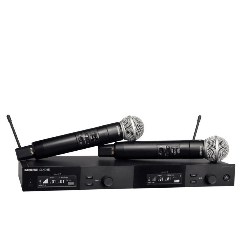 El sistema de micrófono de mano inalámbrico SLXD24D / SM58 de Shure incluye dos transmisores de mano Shure SM58 y el receptor inalámbrico digital de 2 canales SLXD4D. El SM58 se ve en escenarios de todo el mundo debido a su sonido legendario y su construcción para ir a cualquier parte y hacer cualquier cosa. Si ya le encanta el SM58 y desea una versión inalámbrica, este es el sistema que debe elegir. La tecnología inalámbrica digital de vanguardia de Shure ofrece una resolución de audio de 24 bits con una latencia casi imperceptible de 3,2 ms. Agregue el rango de trabajo de 100 metros (328 pies) y tendrá una receta para un potencial inalámbrico serio. Si está listo para dar el paso y darle a su sistema una actualización muy necesaria, no puede equivocarse con una configuración inalámbrica Shure SLX-D.