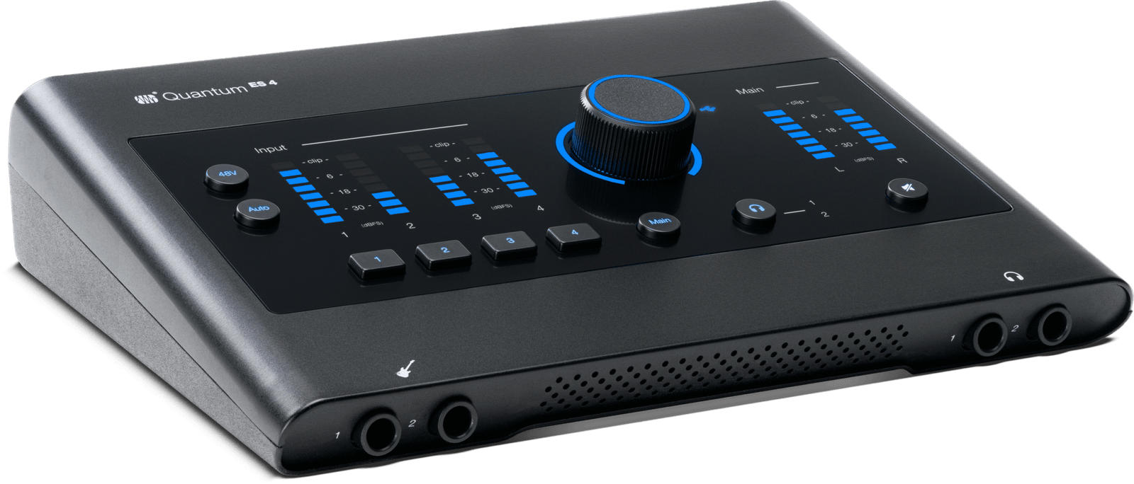 El Quantum ES 4 incorpora cuatro preamplificadores de micrófono de nuevo diseño con +75 dB de ganancia. Nuestros preamplificadores MAX-HD de alta definición son transparentes, de bajo ruido y analógicos con control digital, lo que los hace ideales para los micrófonos más populares de la actualidad.