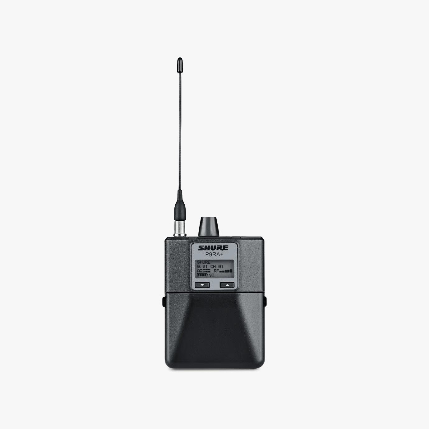 El P9RR+ de Shure es un receptor compacto estéreo de Bodypack para el uso con el Sistema de Monitorización Personal Inalámbrica PSM®900. Con una arquitectura híbrida analógica/digital, el Receptor P9RA+ de Bodypack ofrece una calidad de audio sin igual con más espacio libre, mejor separación estéreo y mayor fidelidad, junto con un rendimiento de RF fiable para una mayor intensidad de la señal de RF para satisfacer las necesidades de aplicaciones profesionales de audio de todos los tipos, incluyendo aplicaciones de IEM e IFB. Todos los receptores P9RA+ son compatibles con los transmisores P9T y P10T y todos los Auriculares SE Sound Isolating™ de Shure.