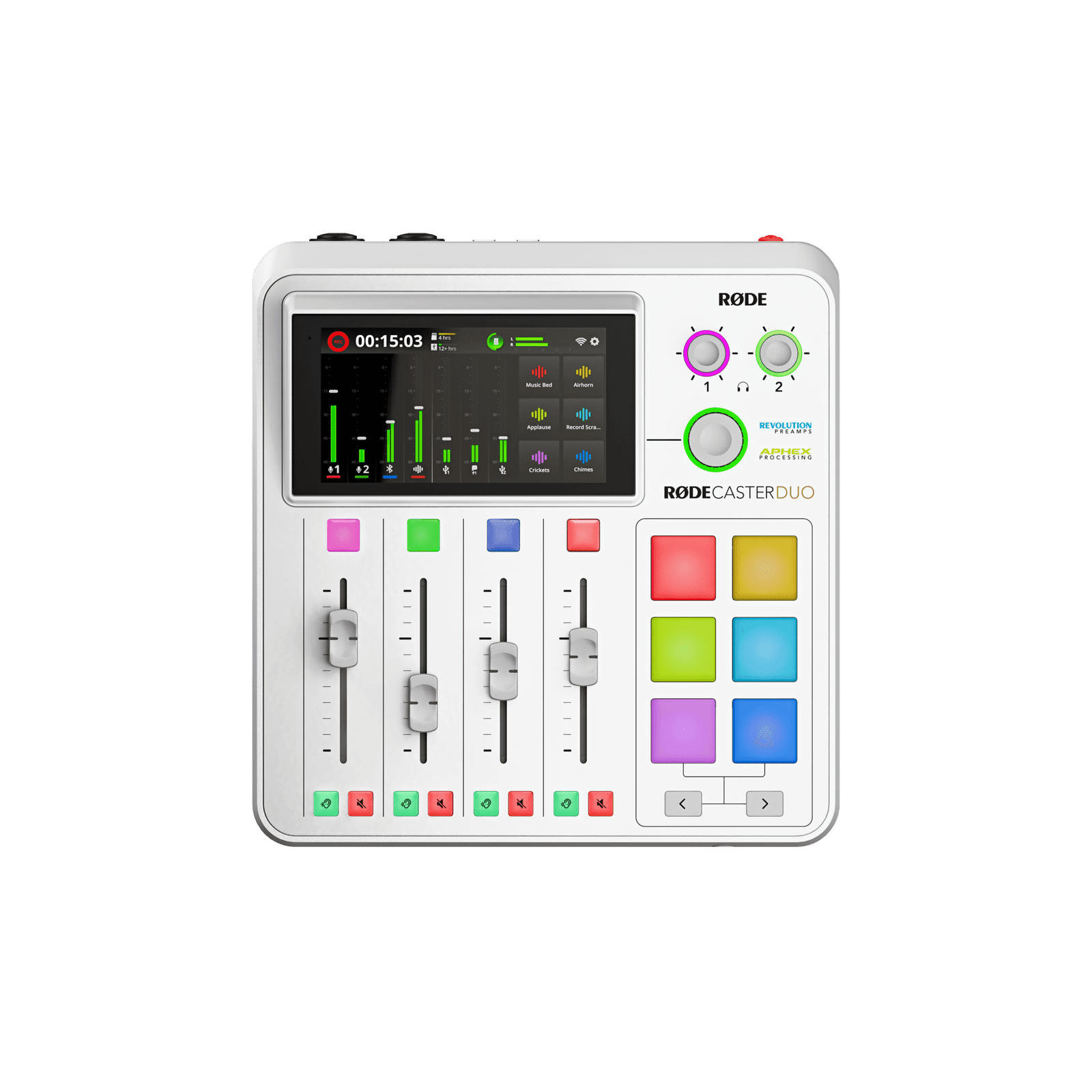 El RØDECaster Duo es increíblemente simple de navegar con su gran pantalla táctil de alta definición, codificador rotativo táctil y faders de calidad de transmisión que te brindan control práctico sobre cada aspecto de tu sonido. Configura tu proyecto en segundos, y con presets profesionalmente diseñados y nuestro editor de procesamiento intuitivo VoxLab™, puedes ajustar tu sonido perfecto con solo tocar un botón o girar una perilla. Nunca ha sido tan fácil crear contenido asombroso.