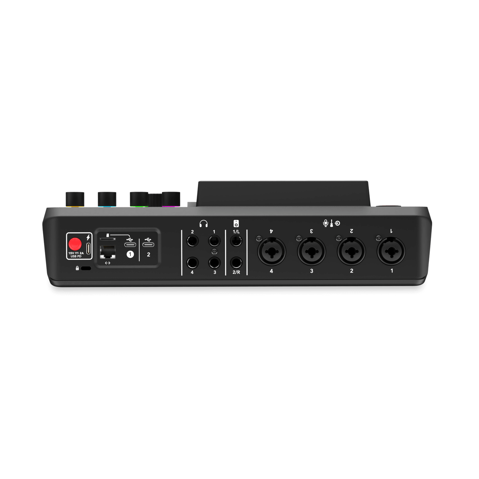 Con cuatro entradas analógicas balanceadas con conectores Neutrik™ combo de alta calidad para conectar micrófonos, instrumentos y dispositivos a nivel de línea, el RØDECaster Pro II es ideal para todo, desde grabar un solo micrófono para una transmisión en vivo o un podcast hasta capturar grabaciones musicales multitrack completas.
