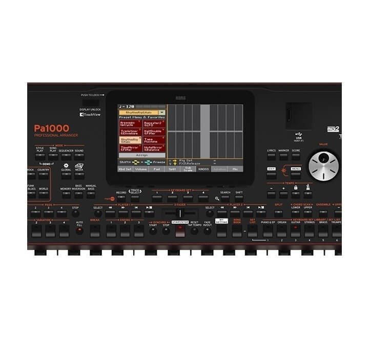 El Teclado Korg Pa1000 con un diseño estilizado y un aspecto profesional. Aunque su tamaño puede parecer compacto, su sonido es enorme, gracias a la potencia del exclusivo sistema de amplificación incorporado. Sus amplificadores de 2 x 33 vatios impulsan 4 altavoces bass-reflex para generar una experiencia sonora rica y con potencia. El panel principal se ha optimizado para asegurar que todos los controles sean intuitivos y ergonómicamente situados. La nueva pantalla TouchView capacitiva tiene una interfaz gráfica rediseñada para hacer su visualización más fácil que nunca, incluso en los entornos de iluminación más exigentes.